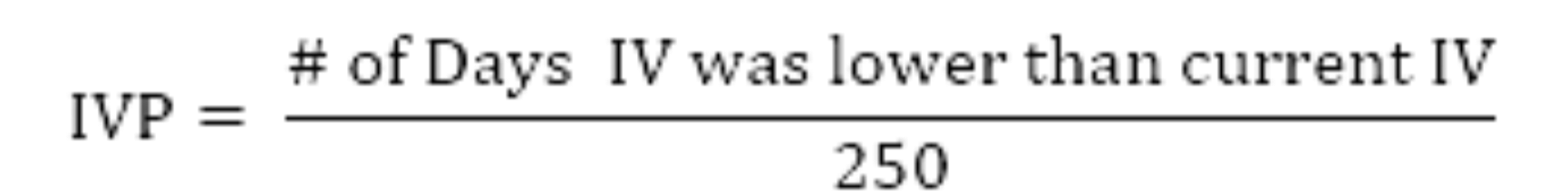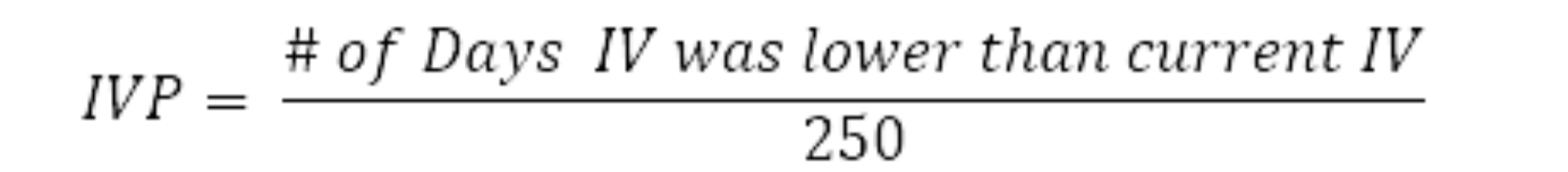 Implied volatility percentile (IVP) gives the number of days in the past that the underlying’s IV was lower than its current IV during the pre-defined look-back period, in percentage terms.
