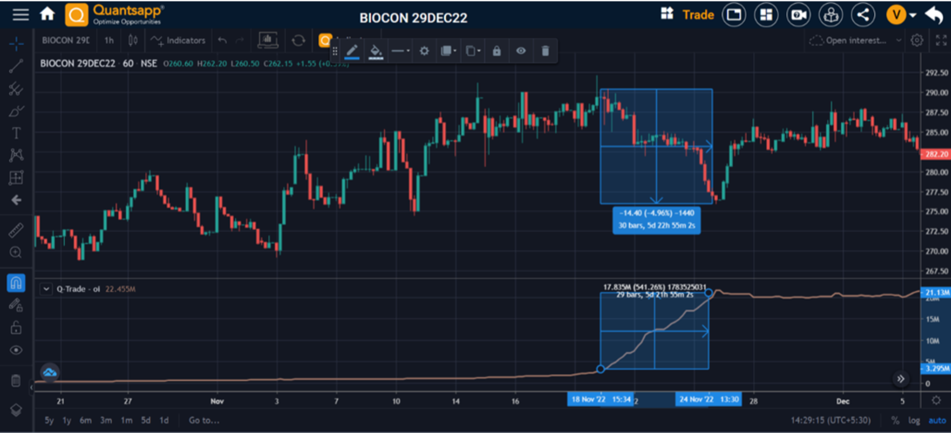 The open interest increase, if happens with price increase of the financial derivative instrument, means longs are getting built. While open interest increase with price drop indicates that fresh participants are going short on the financial instrument like Nifty index futures or BankNifty or NSE F&O stocks. The increase in OI, open interest, indicates fresh participants are trading now.