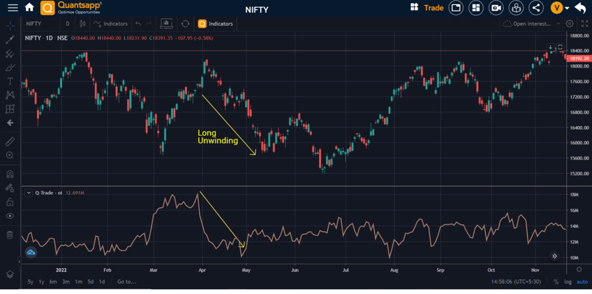 Decrease in OI, with price decrease suggests, participants are squaring off their longs. (Long Unwinding)