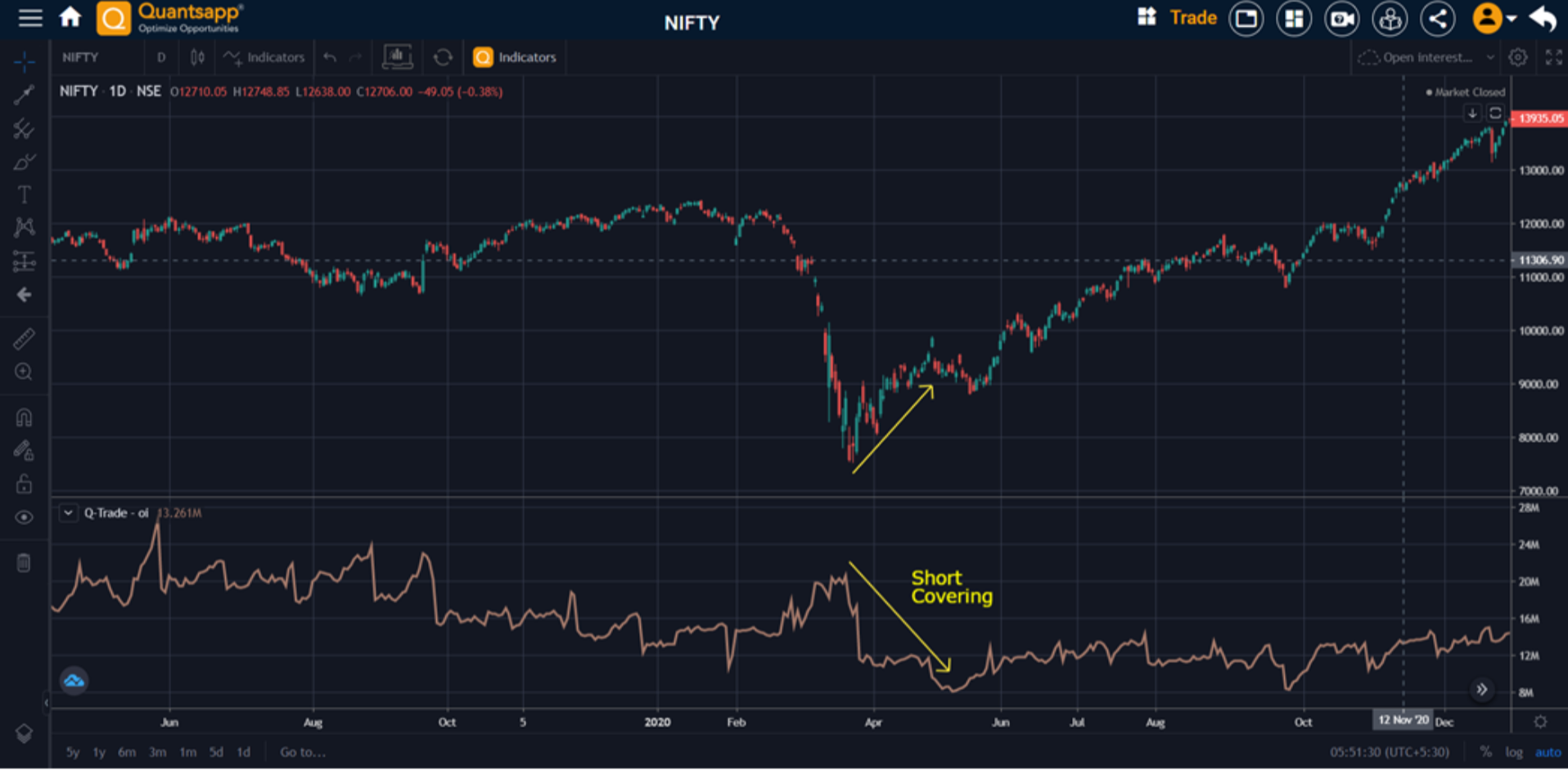 The drop in open interest and the simultaneous rise in prices suggest that there was a bout of short covering in the Nifty index, which in the short-term trading suggests that the bounce could be sharp from the lows, until there is a reasonable drop in open interest, OI.