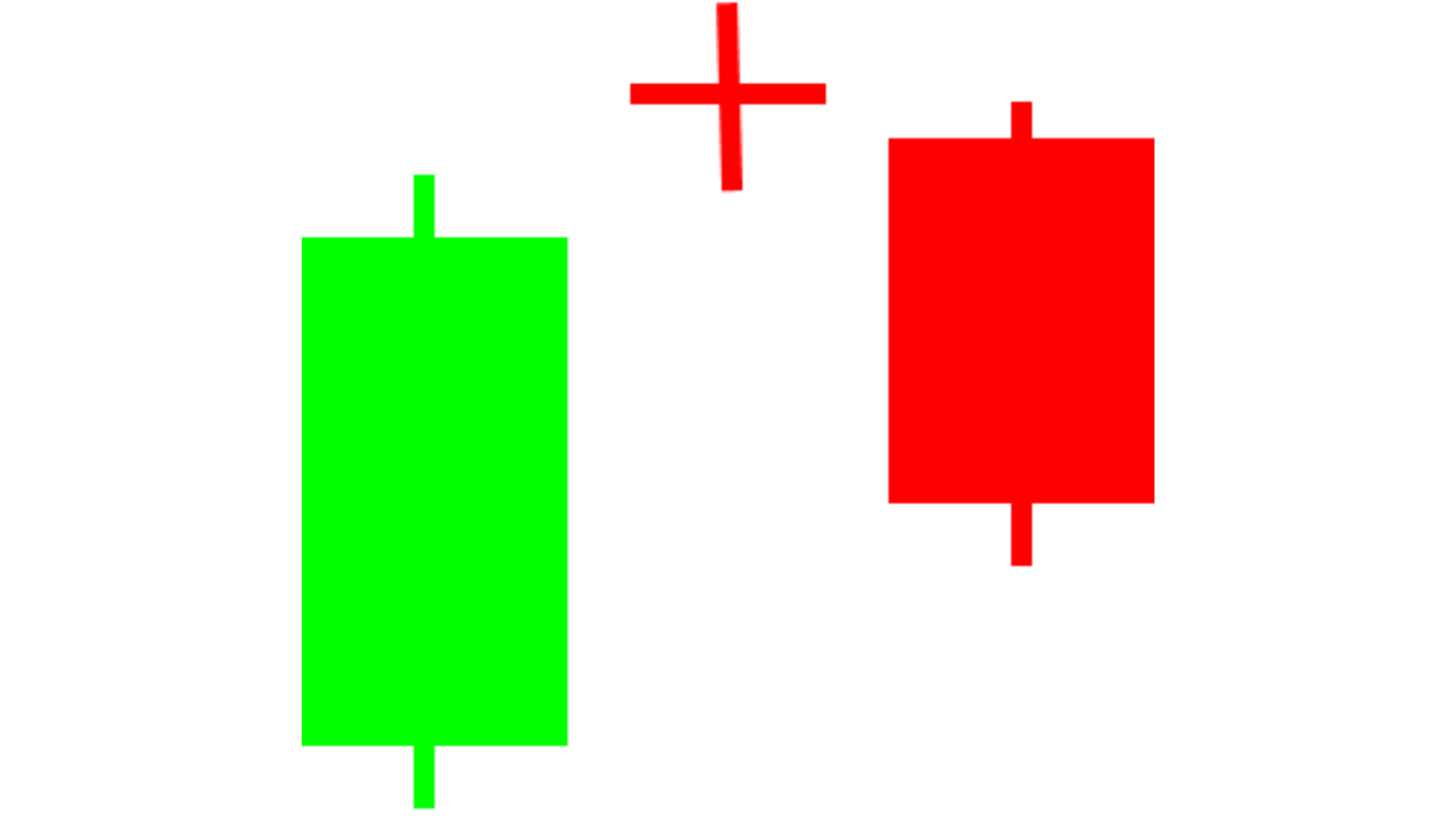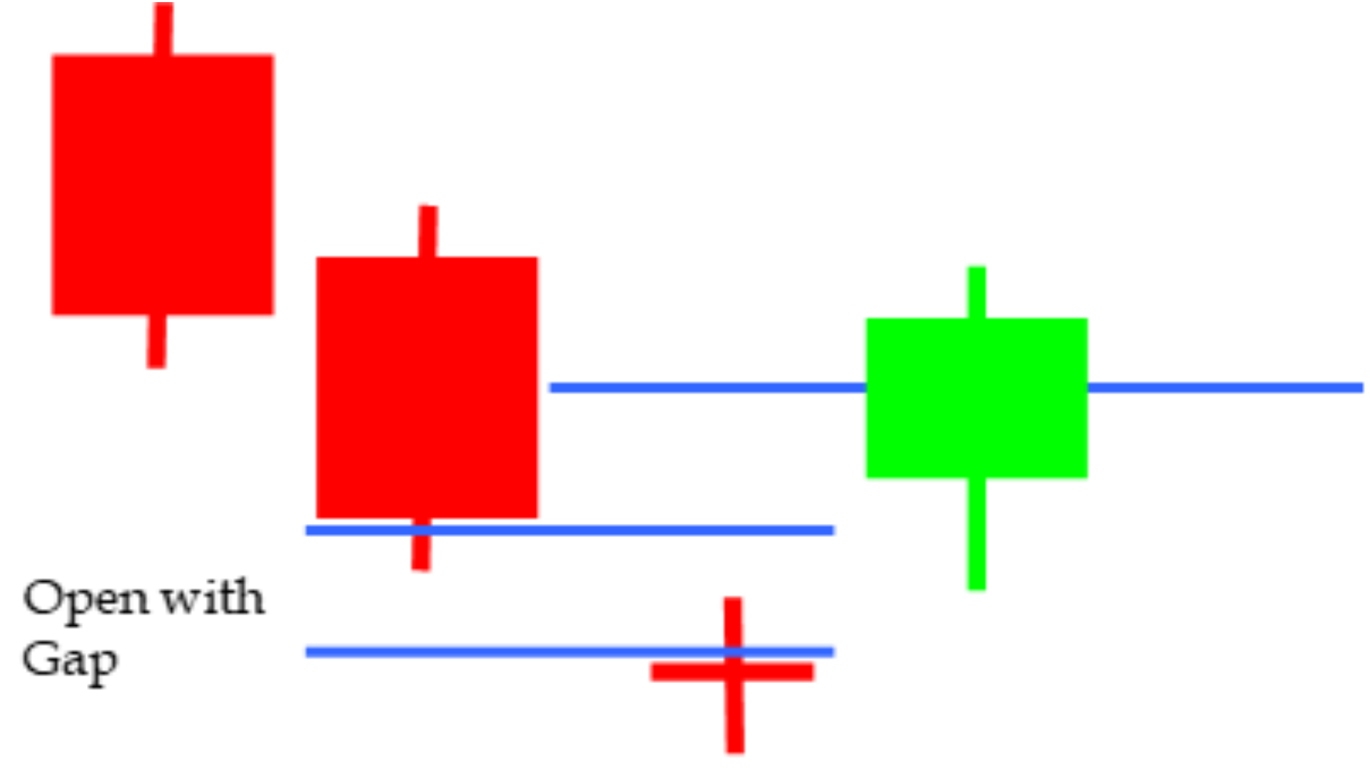 The first candle is a tall green one. Following that, a Doji appears whose body is above the green candle’s body, leaving a gap between the bodies but not necessarily the shadows. A day later, another gap sends price lower into a red candle. Again, the bodies cannot overlap but the shadows can.