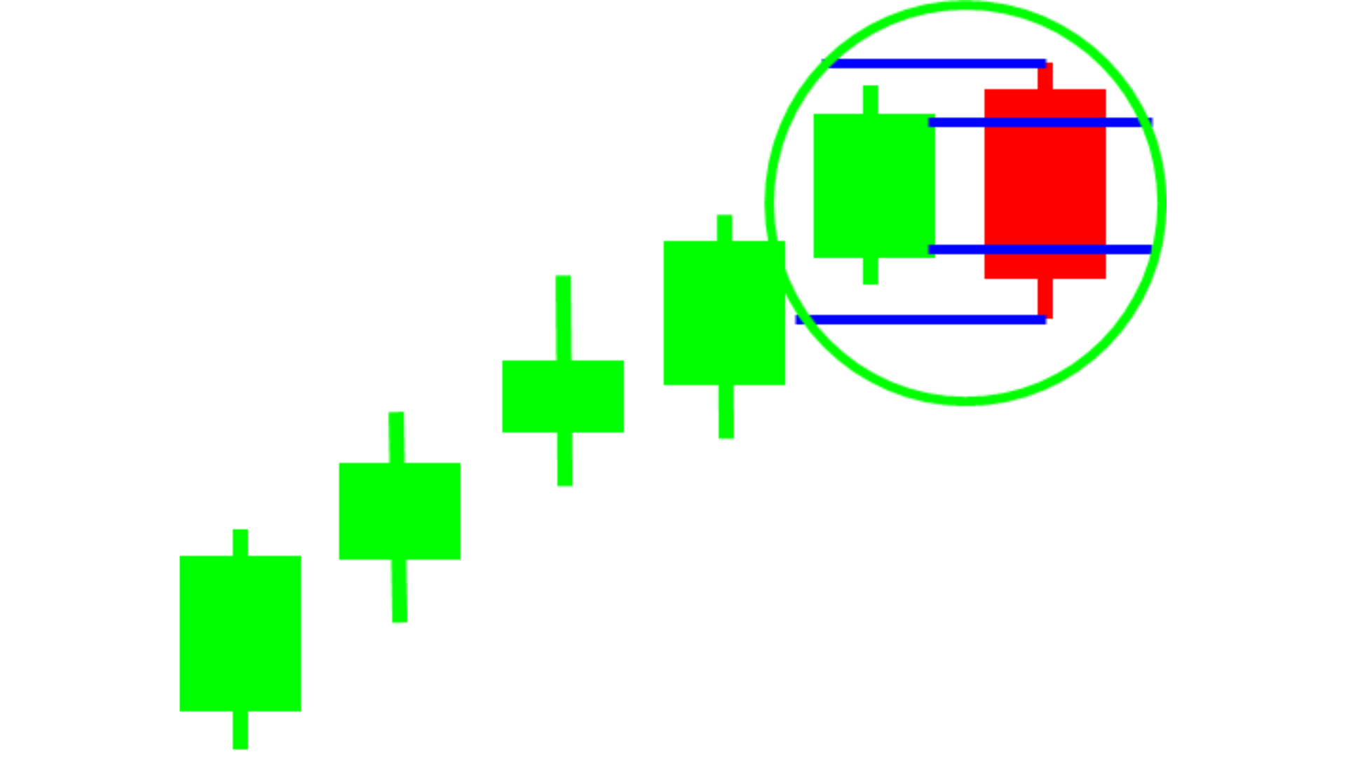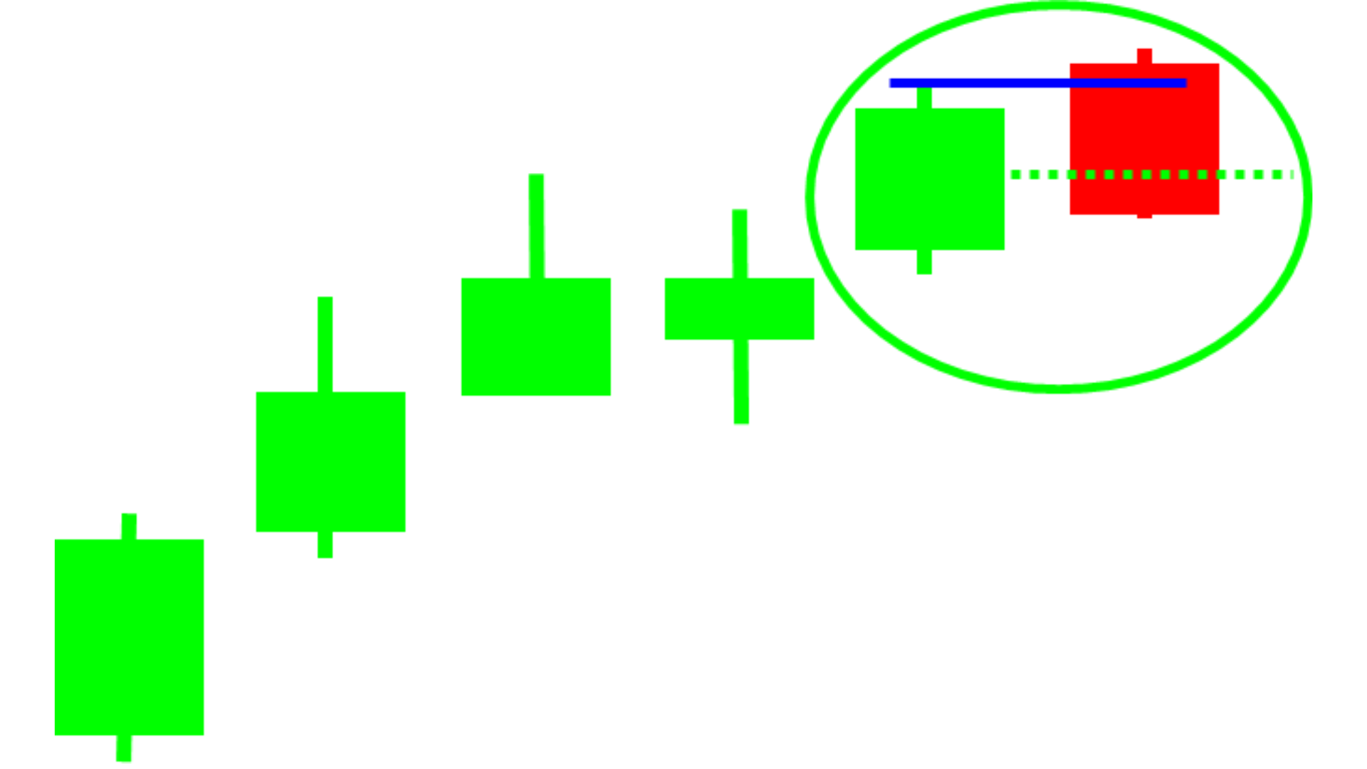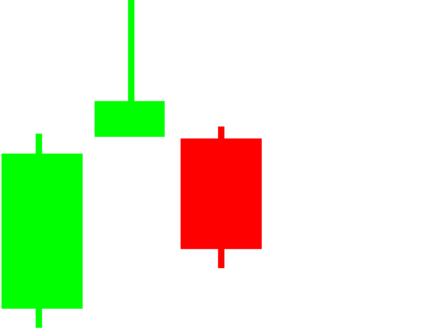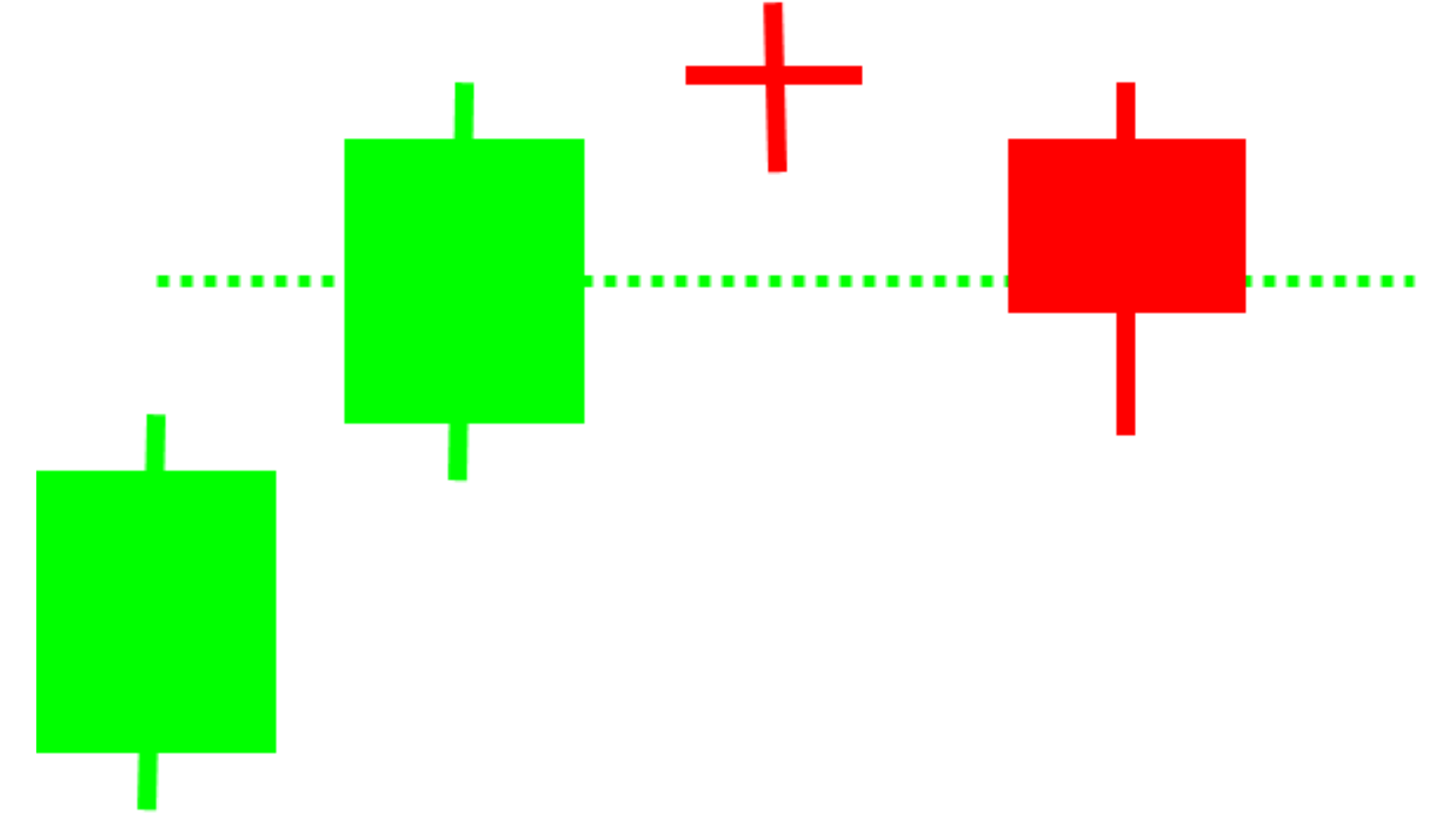Long green candlesticks indicate that the Bulls controlled the trading for most of the moment. This indicates that prices advanced significantly from open and buyers were aggressive.